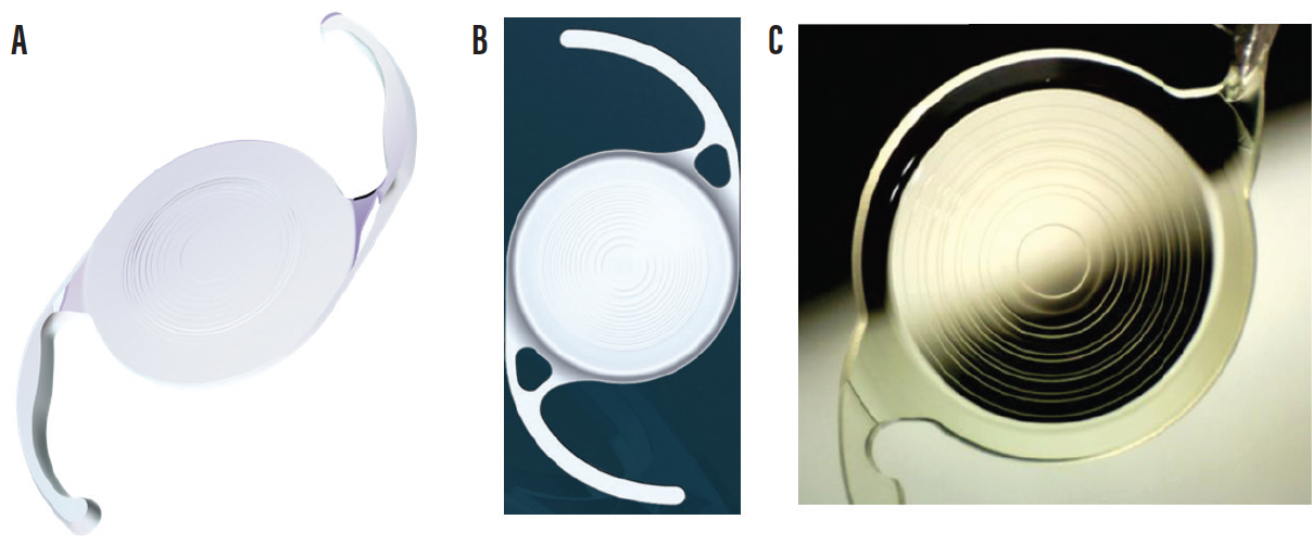 Figure 3. The Clareon PanOptix Pro (A), enVista Envy (B), and Tecnis Odyssey (C).